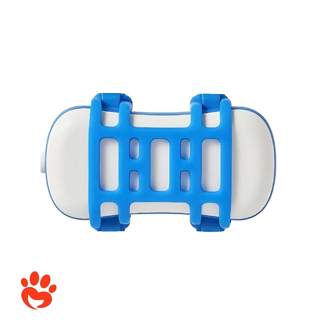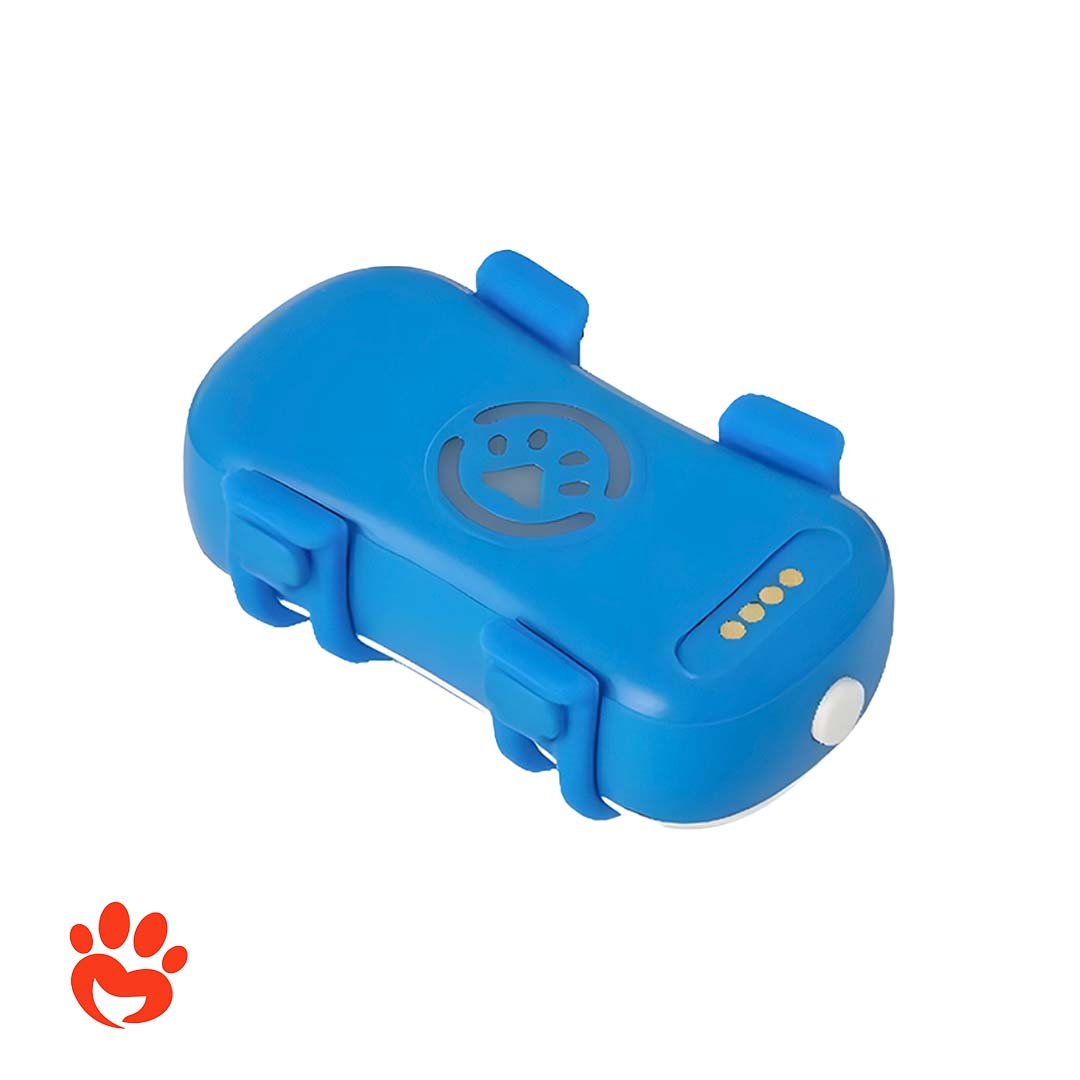 A smart tracker from YJED, designed specifically for cats and dogs. Lightweight and compact, it features a sleek blue-and-white body paired with a flexible silicone mount that securely attaches to your pet’s back or harness.